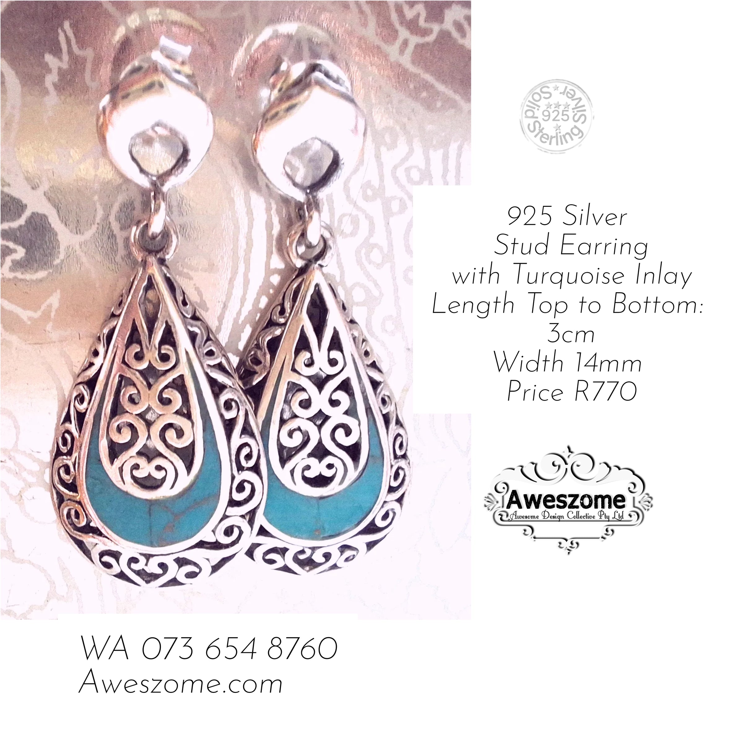 925 Silver Stud Filigré Earrings with Turquoise Inlay