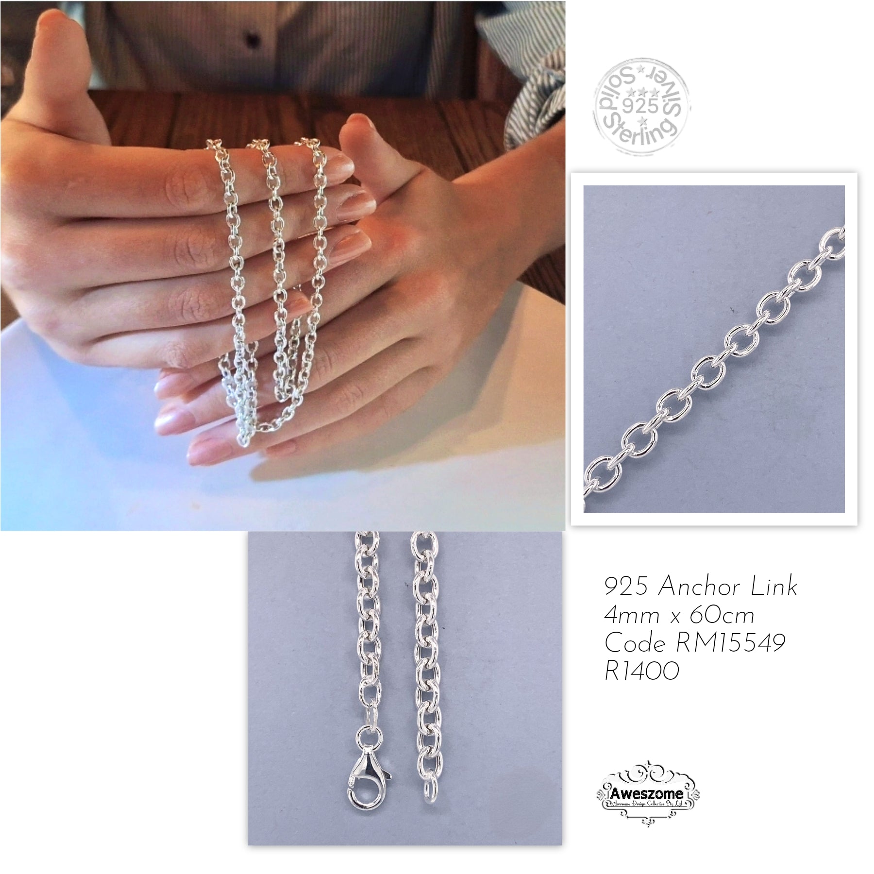 925 Sterling Silver Anchor Chain